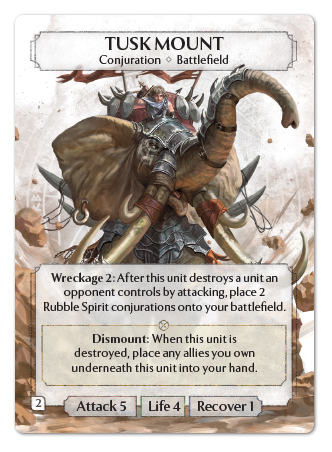 When you’ve deployed enough of your speedy allies to the battlefield, hop aboard the biggest Mount unit in Argaia, the Tusk Mount! This colossal creature lays waste on the battlefield, creating plenty of debris to be reanimated to further your goals.