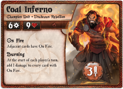 When Obsidian Dwarves see Coal Inferno just sittin' there, so angry he's literally on fire, you know they must shake their heads in admiration. He may not get invited to a lot of Drakesun parties, but Coal's all about getting to know his enemies up close and personal.