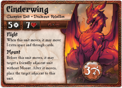 Well, it wouldn't be the Drakesun Rebellion if there weren't dragons! Cinderwing isn't the hardest hitter in the faction, but you have to respect anything this meaty that can also fly AND bring another unit along with it!